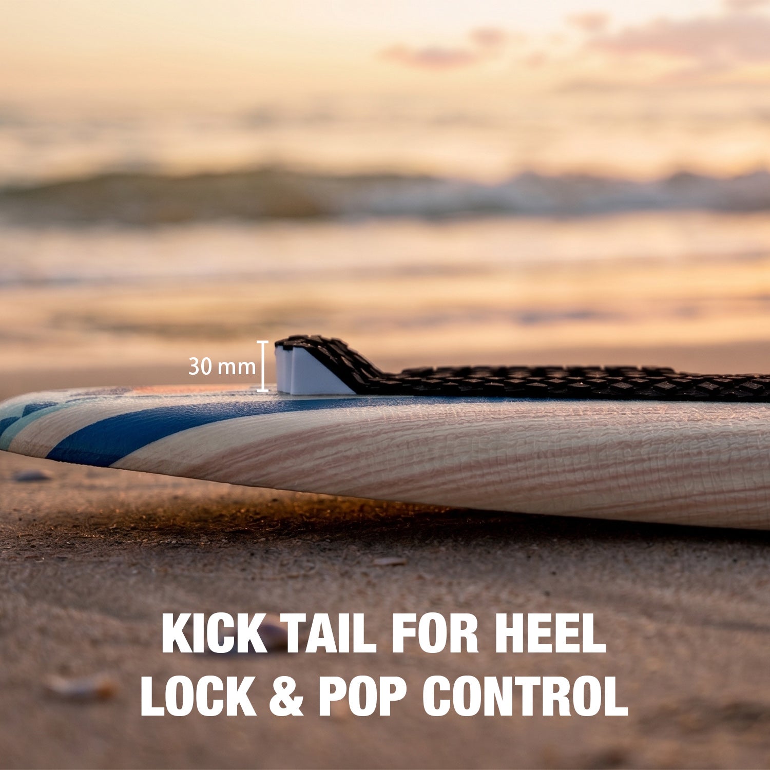 To provide the most responsive ride possible, we’ve integrated a 30mm high-performance tail kick and a 10mm center arch bar. These features allow you to intuitively feel your back foot’s position without ever looking down, giving you a solid platform to push against during critical turns. This ergonomic layout not only enhances comfort during long paddling sessions but also ensures that every ounce of energy is transferred directly to your rails, allowing for explosive drive and maximum maneuverability on the face of the wave.