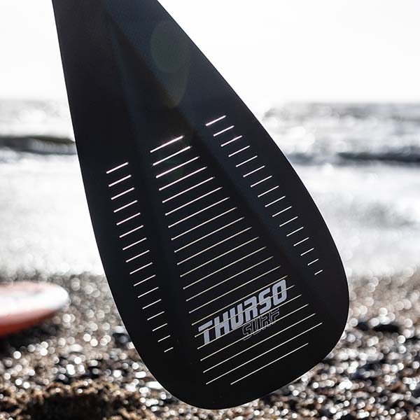 THURSO SURF proudly presents the revolutionary Slitted Paddle — lighter and more efficient than ever. A paddle for paddle boards, this SUP carbon fiber paddle will serve you for each adventure whether you're just cruising away or touring long distances. The ingeniously crafted slots in the blade ensure water flows through with maximum efficiency, transforming your paddling experience into one of effortless glide and superior performance.