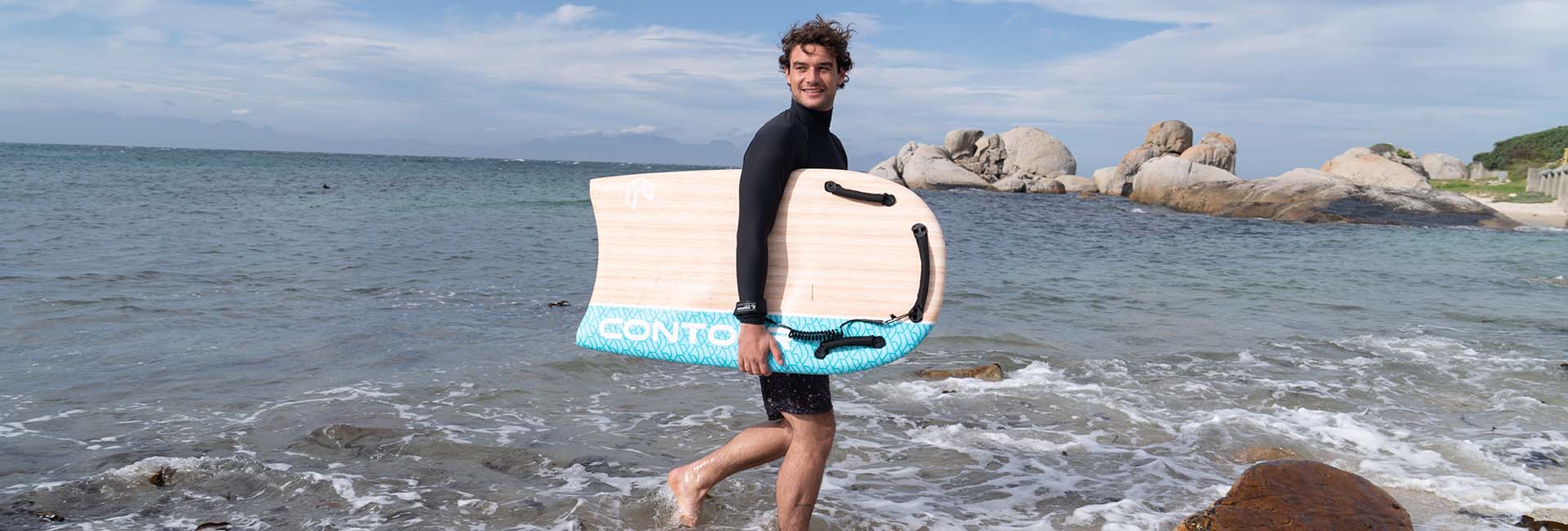 If you're looking for your first bodyboard, a lightweight EPS core bodyboard is the perfect choice to get you started. As the ultimate learning bodyboard, its high buoyancy makes catching waves and learning the basics much easier. This provides a safe entry into the sport, making it the ideal boogie board for beginners. For added security and convenience, our beginner models include a leash to prevent your board from drifting away during a wipeout, ensuring a fun and confident first experience on the water.