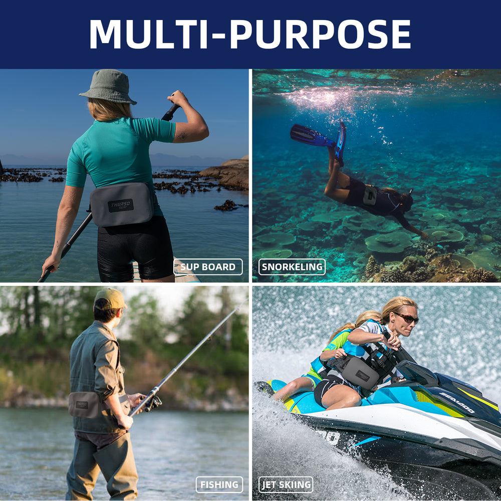 The Waterproof Dry Pouch is the go-to storage solution to keep valuables and essentials safe during any water adventure. Ideal for paddle boarding, kayaking, boating, or simply being a waterproof pouch for the beach. A compact and lightweight dry pouch offering protection against water, sand, dust or dirt. Clip it to your bag or wear it around the waist for hands-free convenience. Perfect for essentials, this water proof fanny pack keeps your gear protected and puts your mind at ease.