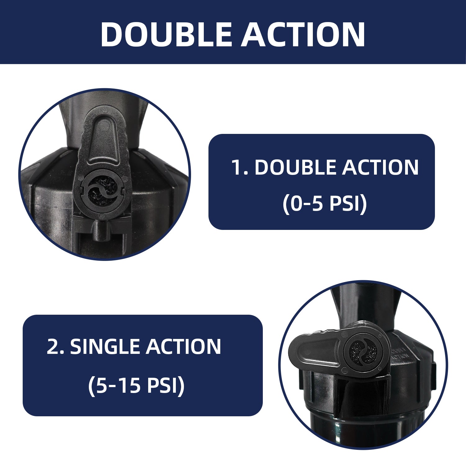 Verfügt über Modelle mit Einzel- und Doppelwirkung. Verwenden Sie den Doppelwirkungsmodus, um ein großes Luftvolumen bei niedrigem Druck zu erzeugen. Wenn das Pumpen schwer wird, wechseln Sie in den Einzelwirkungsmodus, um das Aufpumpen abzuschließen.