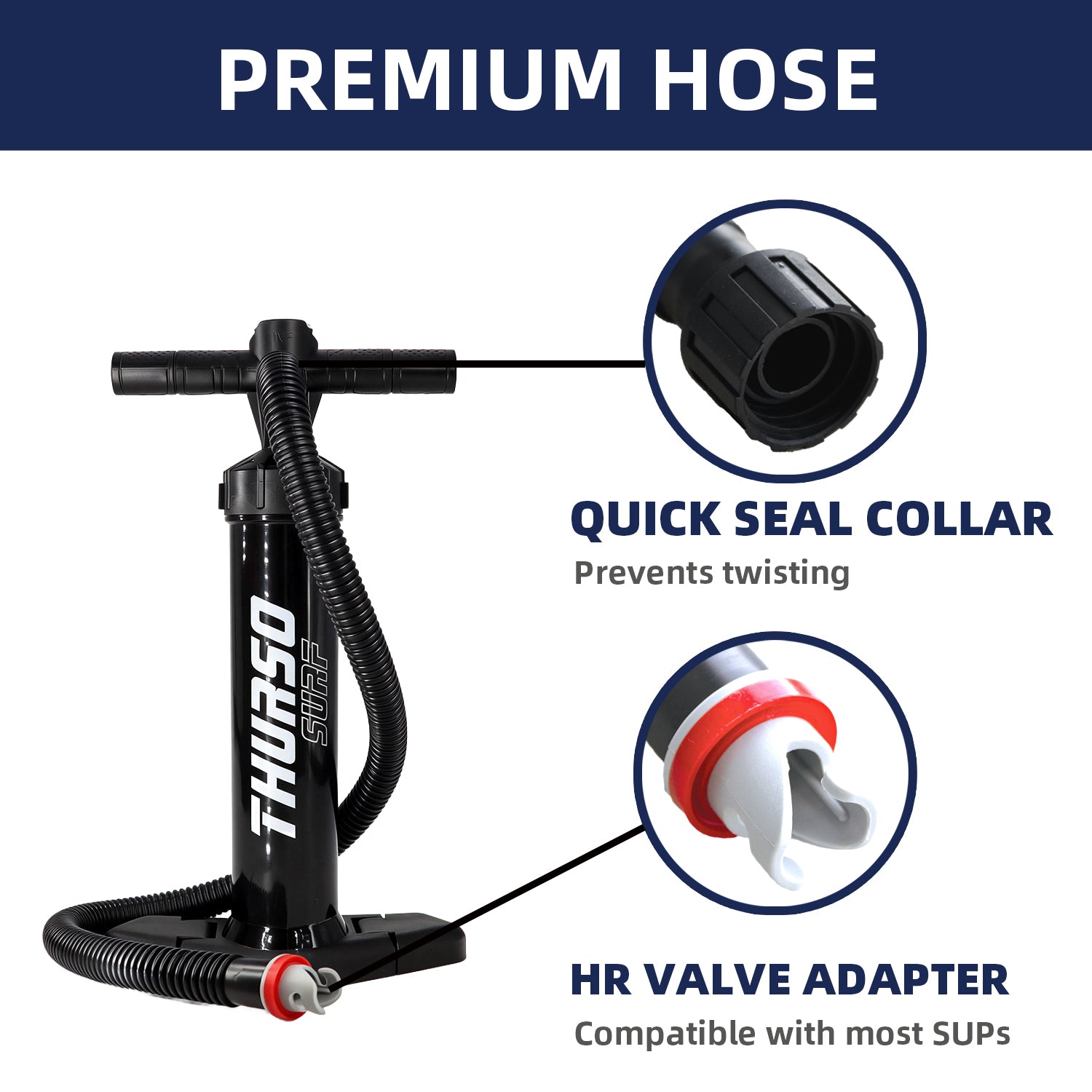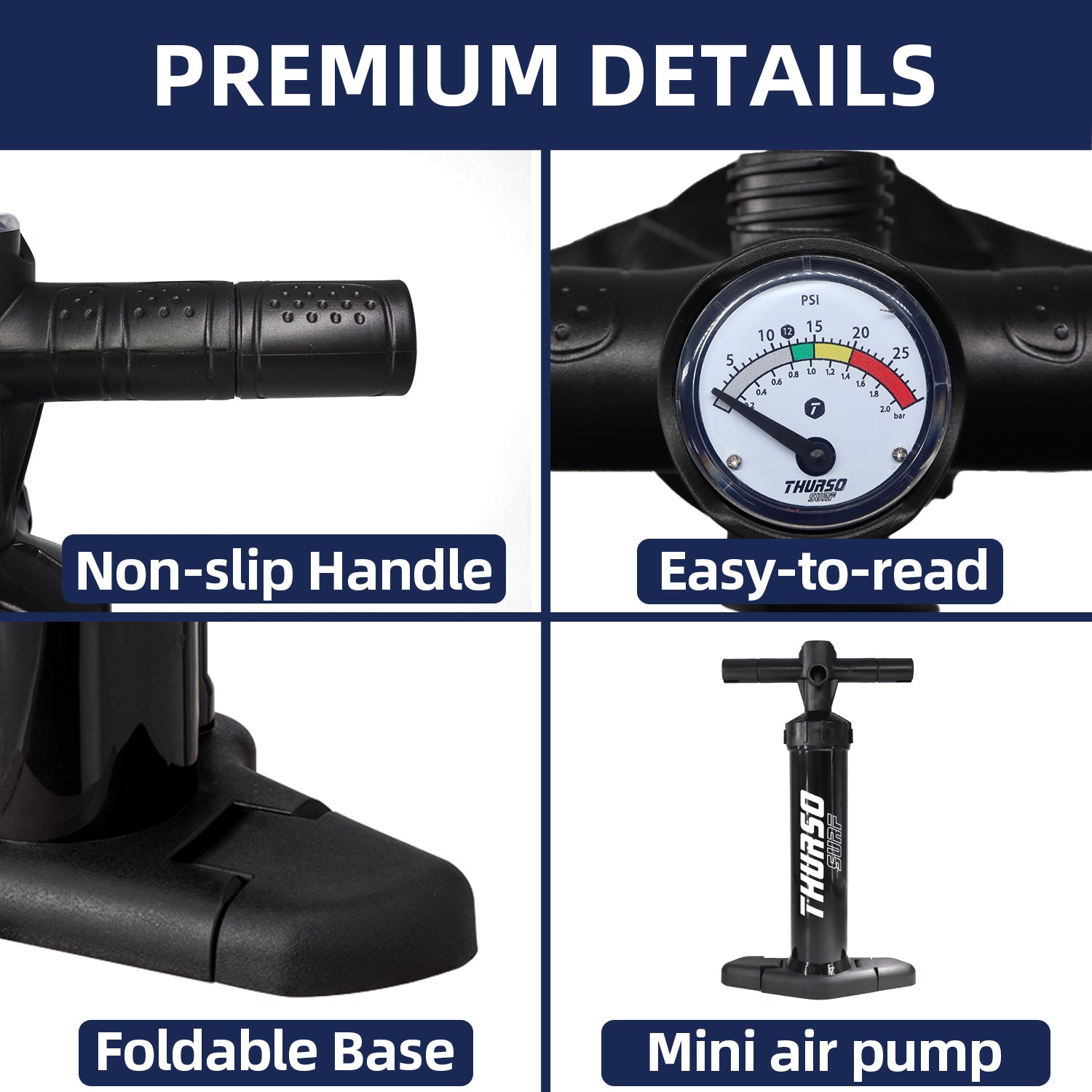 The THURSO SURF SUP Mini Manual Pump is a versatile and compact solution designed for the easy inflation and deflation of your inflatable paddleboard (iSUP). With its efficient system, this paddle board pump allows you to inflate quickly in double-action mode and switch to single-action mode for high-pressure finishing. It is ideal for paddlers on the go, offering both portability and professional-grade performance. This sup hand pump features a high-accuracy pressure gauge that lets you track the process to achieve the perfect PSI, ensuring your board is rigid and stable. The 29 PSI rating ensures compatibility with most SUPs and makes it a reliable inflatable boat pump as well. Weighing just under a pound with a slim profile, it is easy to store in your gear bag. Whether you are a beginner or an experienced rider, this manual sup air pump ensures a smooth, hassle-free prep time so you can spend more time enjoying the water.
