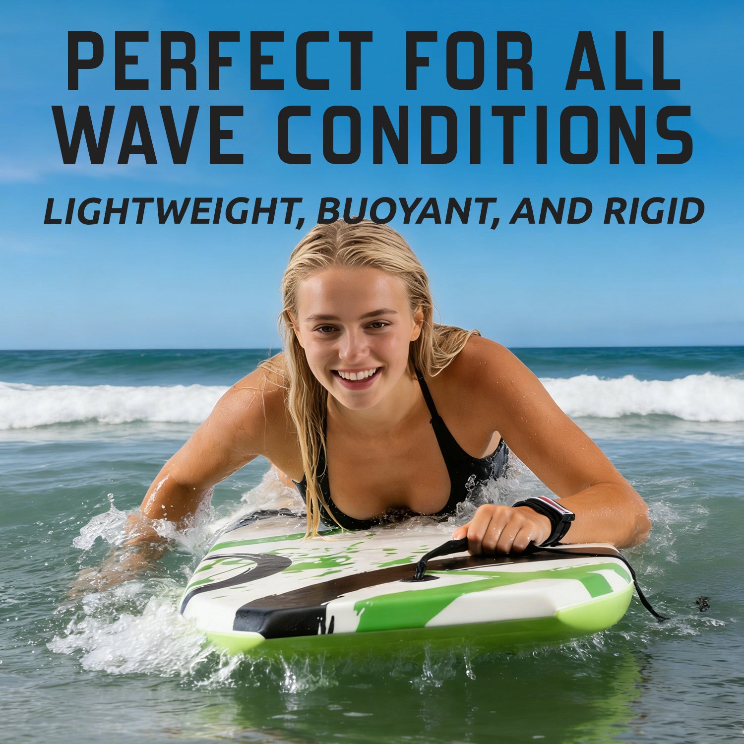 Optimisé pour diverses conditions de vagues, ce bodyboard de 33 pouces est le bodyboard ultime pour enfants, idéal pour les jeunes passionnés, y compris les débutants et les surfeurs intermédiaires. Ses dimensions sont spécialement conçues pour les surfeurs de moins de 30 kg, le plaçant au premier plan des meilleurs bodyboards pour enfants. Doté d'un noyau EPS léger et de longerons FRP résistants aux intempéries, ce bodyboard EPS offre une flottabilité et une flexibilité exceptionnelles, facilitant la navigation des jeunes surfeurs à travers des vagues difficiles avec aisance. Notre procédé de stratification thermique confère à ces bodyboards une durabilité supérieure aux planches de surf traditionnelles collées, empêchant efficacement les cloques, les déformations et la décoloration. De plus, le pont IXPE est conçu à la fois pour la vitesse et le confort et est résistant aux chocs, garantissant que le bodyboard pour enfants reste en excellent état après de nombreuses sessions de surf.